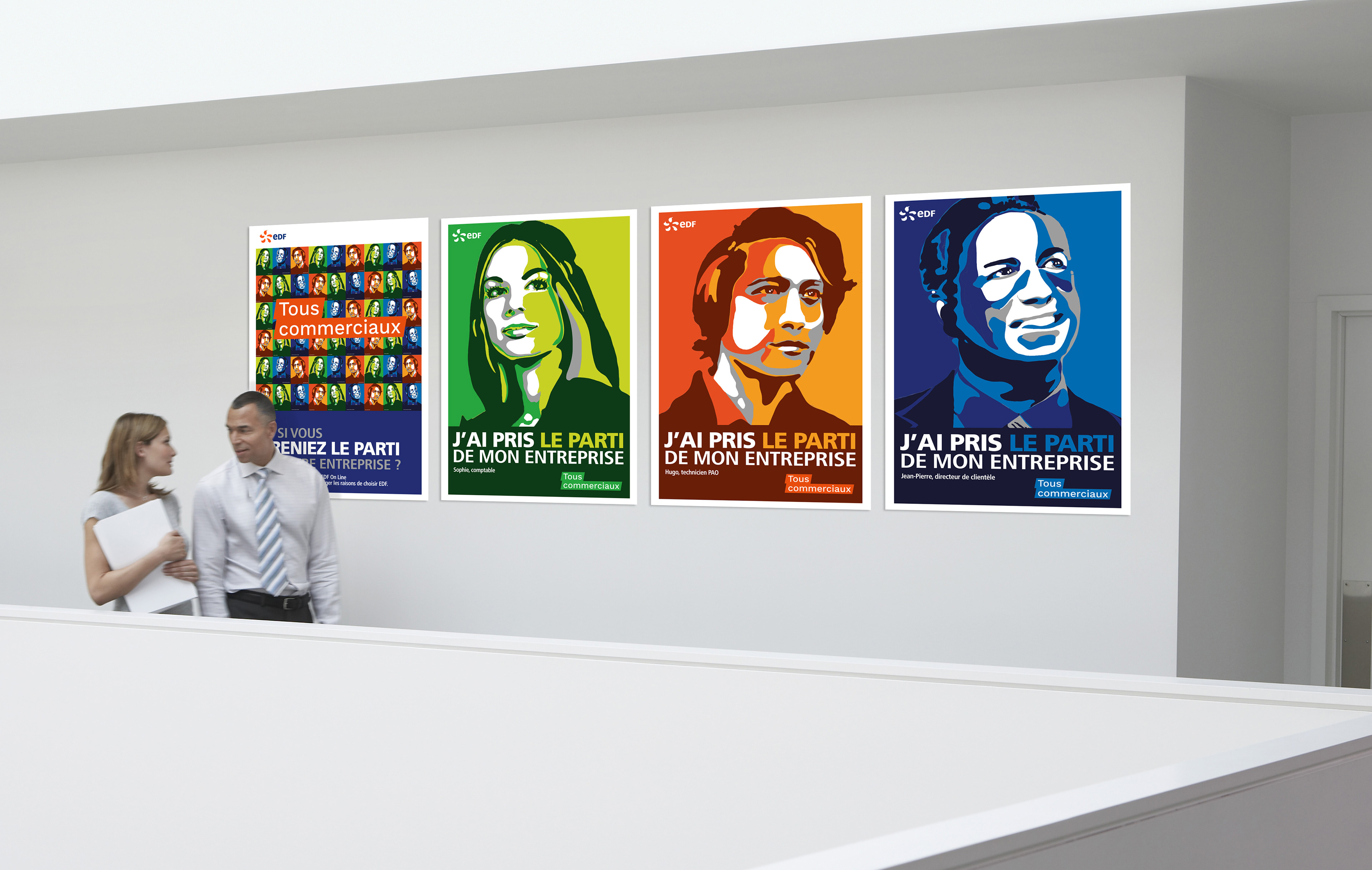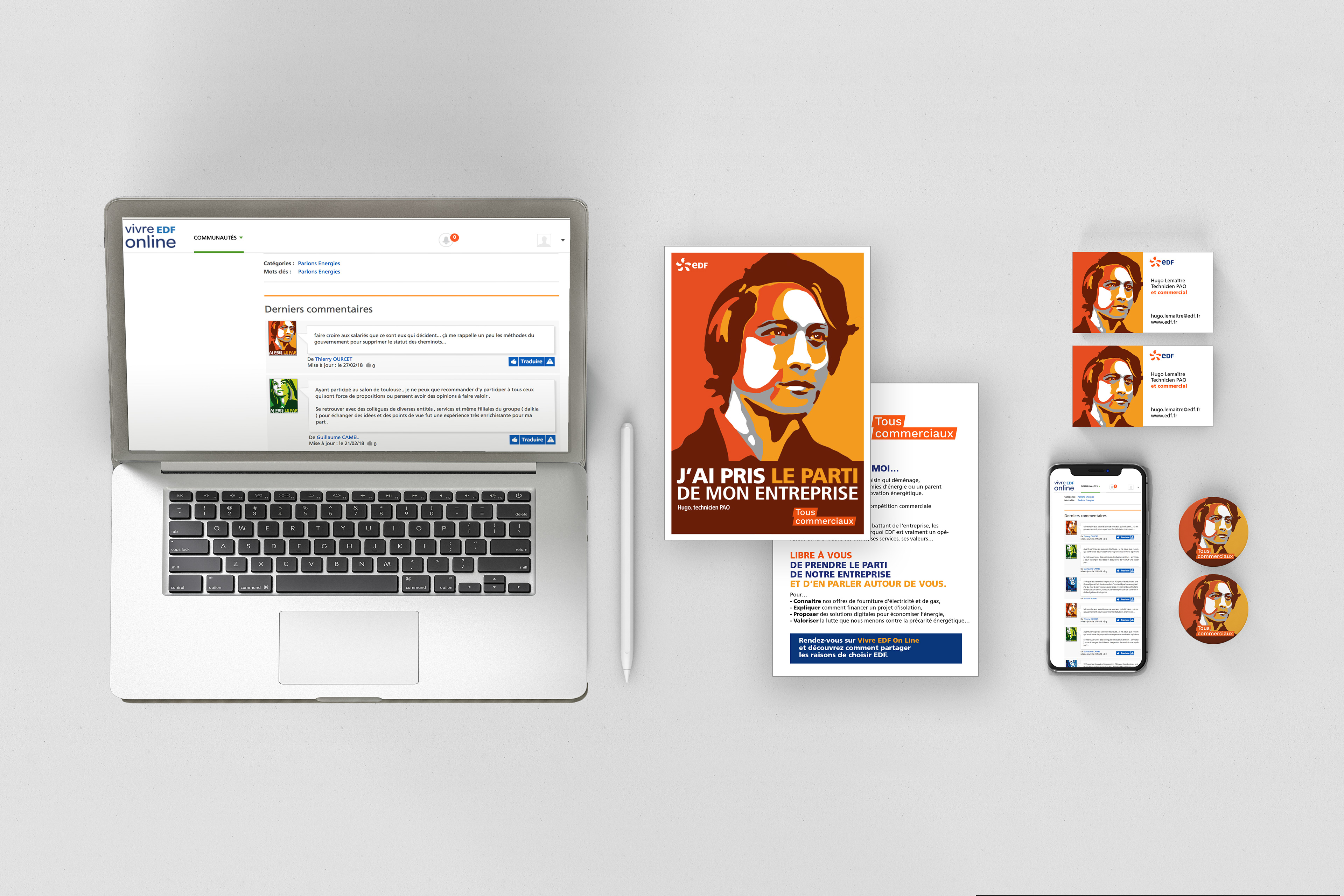 Opération de communication interne pour inciter l'ensemble des salariés du Groupe EDF à promouvoir leur entreprise auprès du public. Campagne d'affichage, photobooth, goodies...