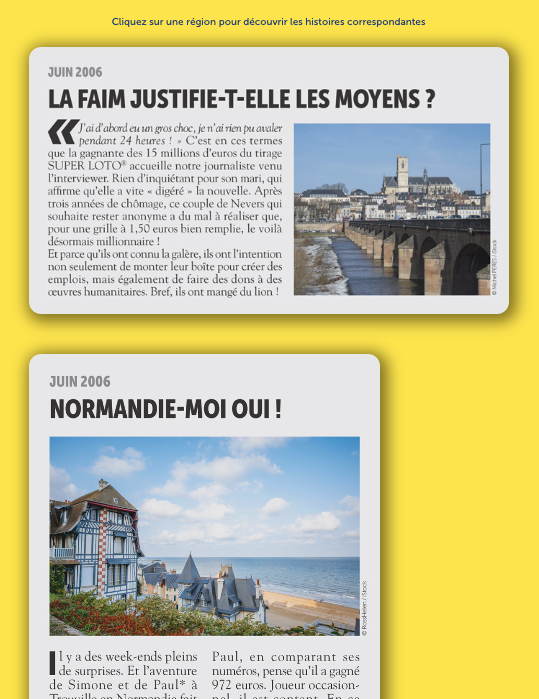 Rédaction de 15 articles à partir de belles histoires de gains en région, depuis la création du Loto. Cliquez sur le bouton ci-dessous pour découvrir le site dédié et les articles.