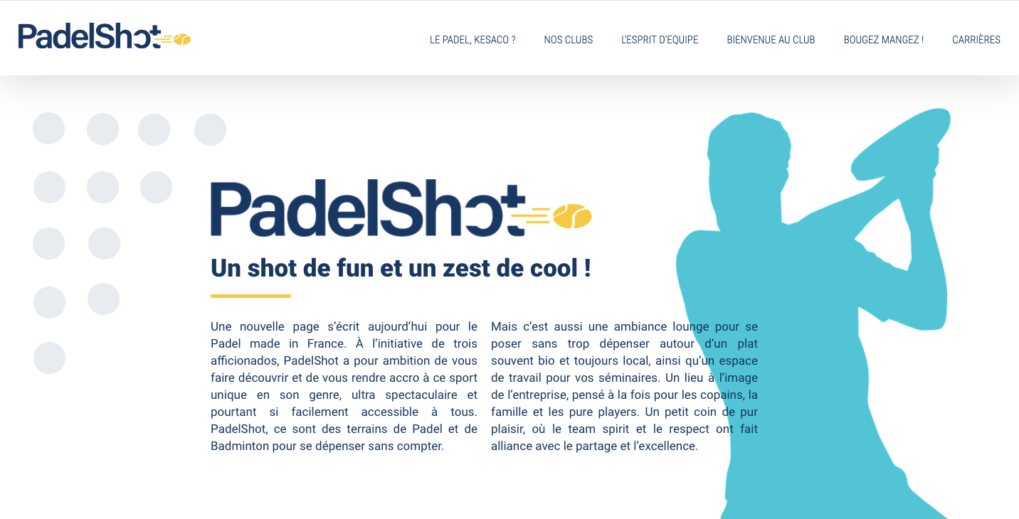 Signature de marque, tone of voice, charte éditoriale et conception rédaction du site de ce nouvel acteur du Padel en France.